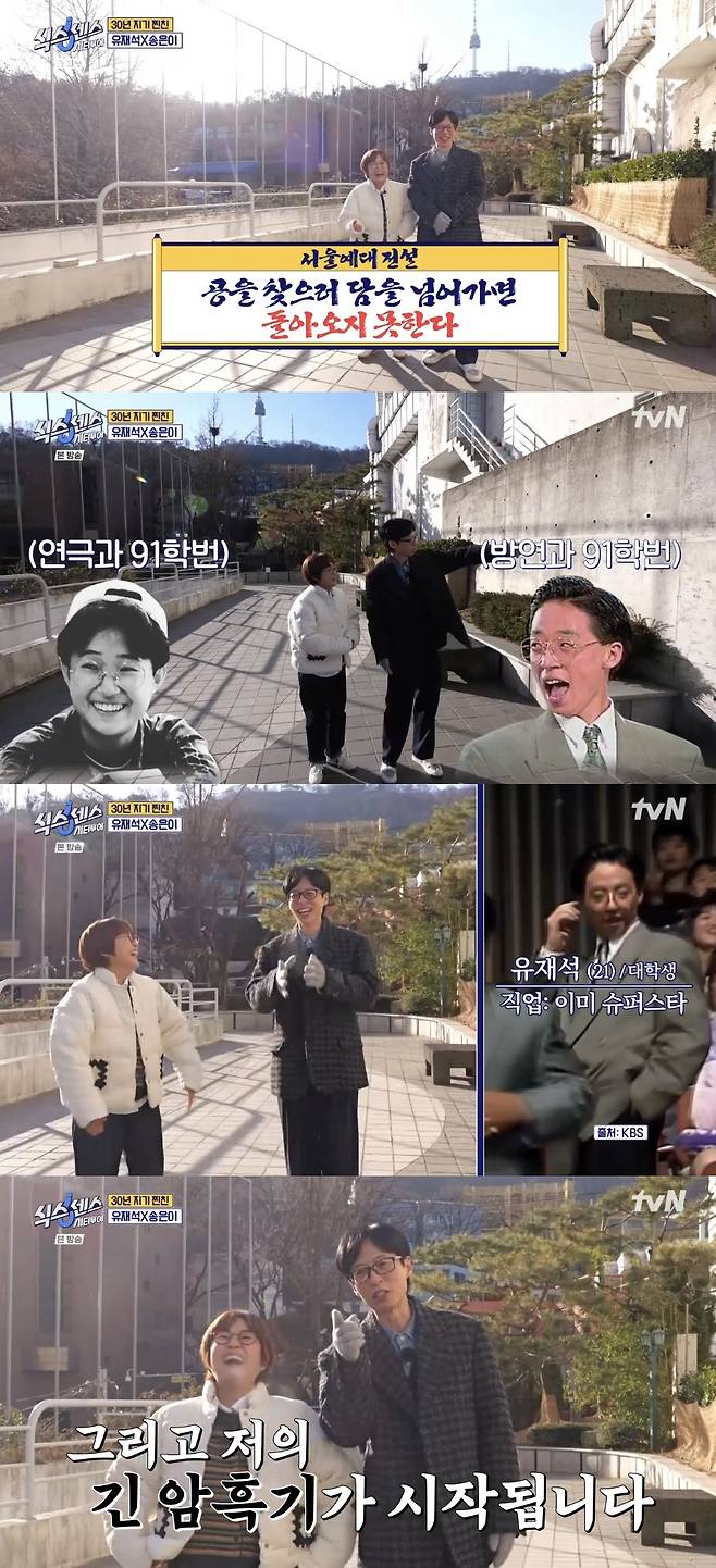 이날 첫 번째 시티투어 장소가 서울 중구인 만큼 유재석과 송은이는 모교인 서울예대를 찾았다. 먼저 도착한 유재석은 대학 시절을 떠올리며 "학교에서 족구하면 공이 옆에 있는 안기부로 넘어가곤 했다. 가끔 좋으신 분 계시면 넘겨주고 아니면 (공이) 사라졌다. 안기부는 들어갈 수 없다"고 말했다.
