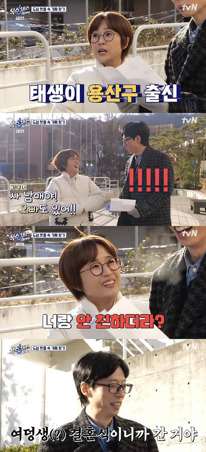 송은이는 "나는 사남매"라고 답했고, 유재석은 "사남매였냐. 난 왜 몰랐지? 나는 삼남매다"라고 말했다. 그러자 송은이는 "내가 너 여동생 결혼식도 갔다. 여동생이랑 너랑 안 친하더라. 깜짝 놀랐다. 오빠랑 그렇게 안 친한 거는 처음 봤다. 그래도 결혼식인데"라고 유재석 남매의 사이를 폭로했다.