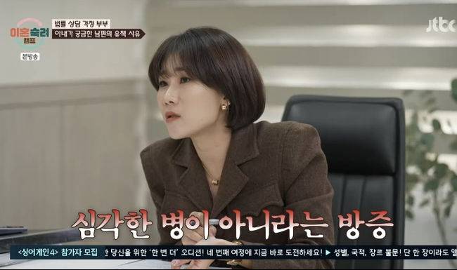 13일 방송된 JTBC 예능 '이혼 숙려캠프' 걱정부부가 변호사 상담을 한 모습이 그려졌다.