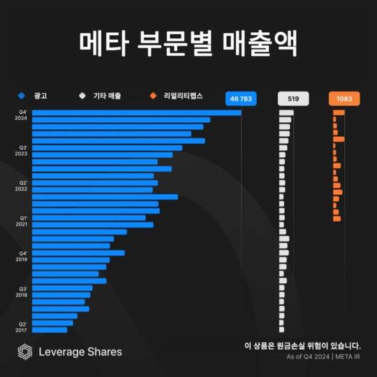 주가상승 탄력 붙은 메타, 부문별 매출은? [레버리지셰어즈 인포그래픽]