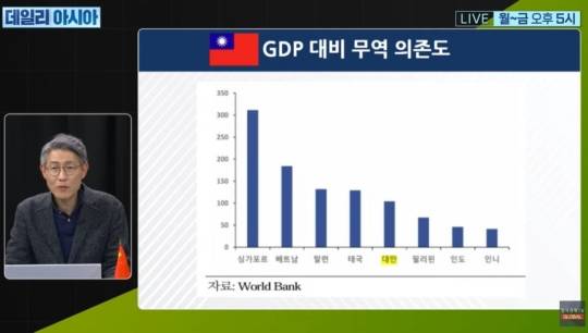 월드뱅크 자료를 보면 대만은 GDP 대비 무역의존도가 104%로 고성장국의 두배에 달합니다.