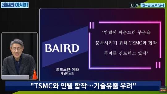 미국 투자사 BAIRD 트리스탄 게라 애널리스트는 현지시간 12일 "인텔이 파운드리 부문을 분사시키기 위해 TSMC와 합작 투자를 검토하고 있다"고 주장했습니다.