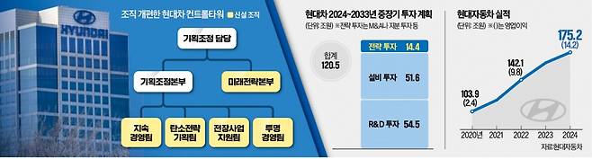 현대차는 M&A를 포함한 ‘전략투자’에 2024년부터 10년간 14조4000억원을 투자할 계획이다. 같은 기간 ‘모빌리티 게임체인저’ 전략에도 22조1000억원을 투입한다. 여기엔 자율주행 기술, SDV(소프트웨어 중심으로 진화하는 자동차) 전환, AAM 로보틱스 등이 포함된다.
