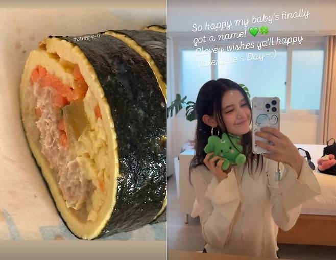 김밥 위에 "김민지 김밥 먹는다"라는 멘트가 적힌 사진과 더불어 멤버 다니엘이 클로버 모양의 캐릭터 인형을 들고 셀피를 찍는 짧은 영상이 올라왔다.