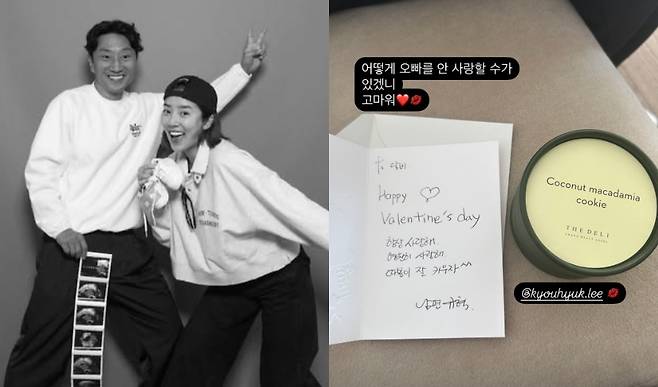 그는 "어떻게 오빠를 안 사랑할 수가 있겠니. 고마워"라는 글과 함께 남편 이규혁이 밸런타인데이 기념으로 준비한 마카다미아 쿠키와 손편지를 공개했다.