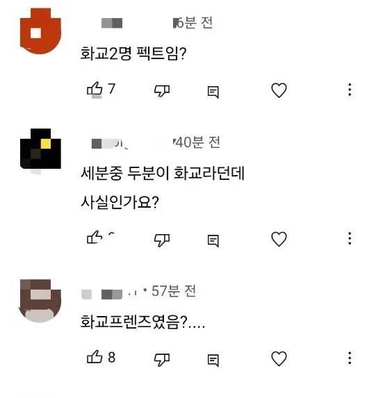앞서 이낙준, 우창윤, 오진승이 운영하는 '닥터프렌즈' 채널 영상에는 "세분중 두분이 화교라던데 사실이냐", "화교프렌즈였냐' 등 때아닌 '화교설'을 제기하는 누리꾼들의 댓글이 달렸던 바.