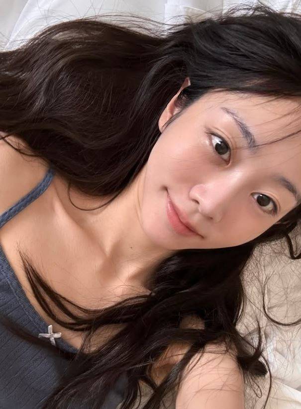 또 다른 사진에서는 끈나시를 입고 침대에 누워 셀피를 찍기도 했다. 큰 눈망울과 청초한 미모가 눈길을 끌었다,.