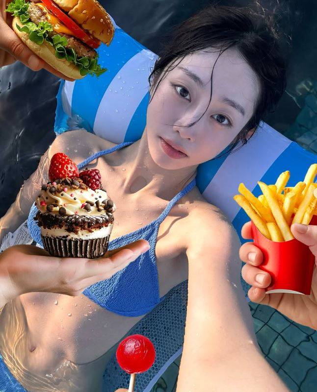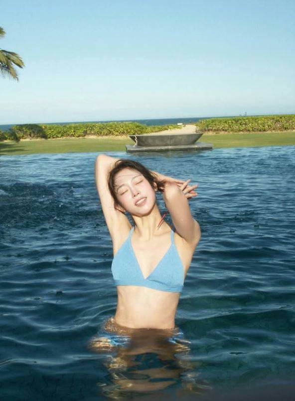 하늘색 비키니를 입은 서지수는 수영장에서 늘씬한 몸매를 뽐냈다.