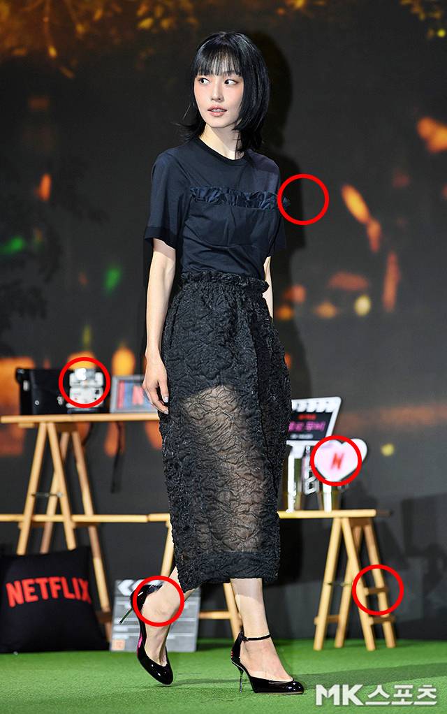 이날 제작발표회에서 전소니는 러플 디테일이 돋보이는 블랙 반팔 티셔츠에 주름 잡힌 텍스처감 있는 블랙 시스루 롱스커트를 매치해 차분하면서도 세련된 스타일링을 자랑했습니다.