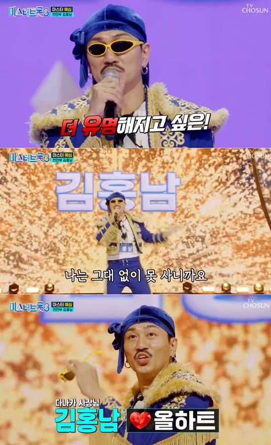 그는 마스터 예심에서 히트곡 '개구리다'를 선곡해 유쾌하고 열정 넘치는 무대를 선보였고, 마스터들의 뜨거운 호응을 이끌어내며 '올하트'를 획득했다. 당시 장시간의 대기 끝에 무대에 올랐다는 김홍남은 "지칠 대로 지친 상태였다. 저뿐 아니라 마스터들도 지친 것 같아 걱정했다. 그럼에도 불구하고 제 무대를 진심으로 즐겨줘서 감사했다"고 인사를 남겼다.