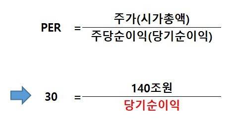 시총 140조원인 종목의 PER이 30배가 되려면 당기순이익은 4.7조원이 돼야 합니다.
