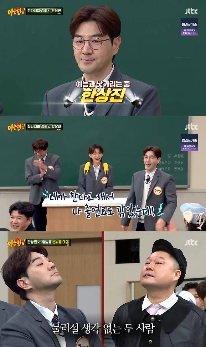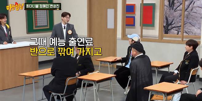 이날 방송에서 교단에 선 한상진은 "아직도 예능만 나오면 어색한 배우 한상진이다"라고 반가운 인사를 전했다. 이때 이수근이 "상진이는 체했냐"라며 긴장감에 하얗게 질린 한상진의 안색을 디스했고, 이에 발끈한 한상진이 최다니엘, 정혜인에게 "기세에 밀리지 마"라며 큰소리를 치는 장면이 이어지며 시작부터 웃음을 안겼다.