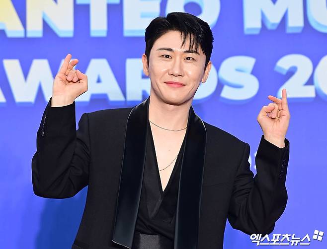 이날 시상식에 앞서 진행된 레드카펫 행사에 참석한 가수 영탁이 포즈를 취하고 있다.