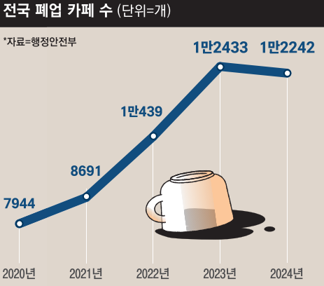 ![지난해 폐업 커피숍 수가 1만2242개에 달해 하루에 34개꼴로 폐업하는 것으로 나타난 가운데 우후죽순 허가가 되는 점이 문제로 지적되고 있는 가운데 서울의 한 빌딩에 5개의 커피숍이 나란히 자리 잡고 있다. [이승환 기자]](https://img4.daumcdn.net/thumb/R658x0.q70/?fname=https://t1.daumcdn.net/news/202502/16/mk/20250216201512732cmed.jpg)