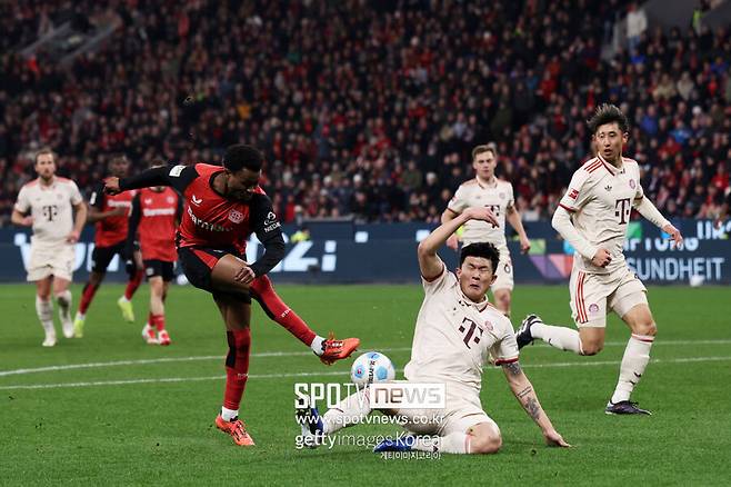 김민재는 전반 초반부터 부지런히 뛰어다니며 레버쿠젠의 공격을 막아냈다. 김민재는 전반 18분 레버쿠젠의 네이선 텔러가 페널티지역 오른쪽으로 파고들어 오른발 슈팅을 시도하자 슬라이딩 태클로 막아내 실점 위기를 넘겼다.