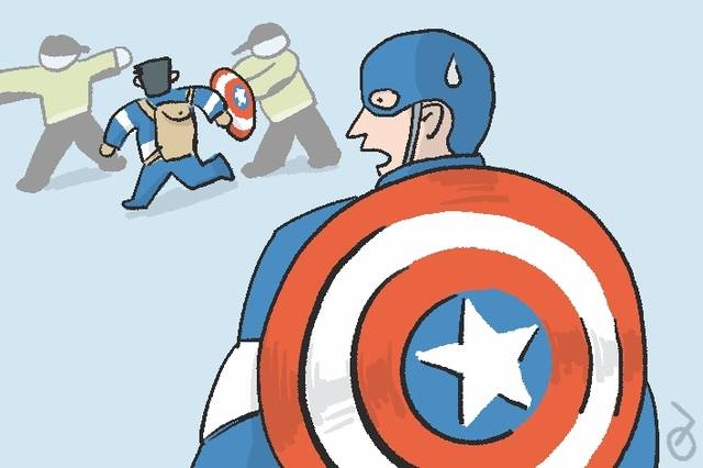 그럼에도 많은 사람들은 인류나 미국의 적으로 설정된 상대와 싸우는 모습만 보고 캡틴 아메리카를 미국 그 자체로 인식하는 경우가 많다. 캡틴 아메리카 복장을 하고 15일 주한중국대사관에 난입하려다 체포된 40대 남성은 ‘중국대사관을 테러하겠다’는 취지의 발언을 한 것으로 알려졌다. 중국을 적국으로 상정하고 대사관 공격을 정의로운 일로 여긴 듯하다. 하지만 타국의 외교공관에 대한 공격은 진짜 캡틴 아메리카는 절대 하지 않을 행동이다. 애국자가 되고 싶다면 외교적으로 우리나라를 난처하게 만드는 이런 행동은 하지 않는 게 좋을 것이다.