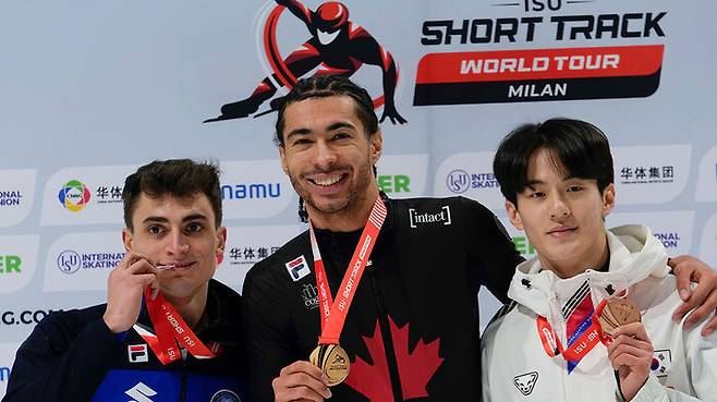 장성우는 오늘(17일) 이탈리아 밀라노 아사고 포럼에서 열린 2024-2025 국제빙상경기연맹(ISU) 쇼트트랙 월드 투어 6차 대회 남자 1,000m 결승에서 1분 23초 220의 기록으로 3위에 올랐습니다.