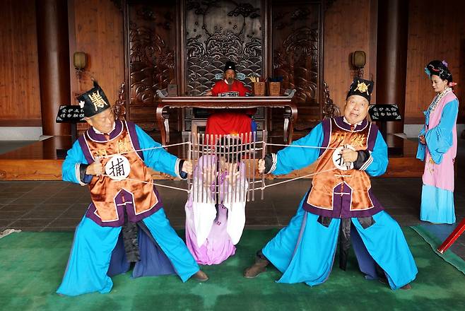 이에 며느리를 관아에 고발해 고문받게 하고 자살을 강요한다. 며느리는 자결하지만, 얼마 뒤 며느리를 사모한 이웃 남자가 벌인 음모였음이 밝혀진다. 후이저우에서는 과부가 되면 자살하는 일이 여성의 본분이었다. 관청에서는 이들 가문에게 열녀문을 내려 조장했다.