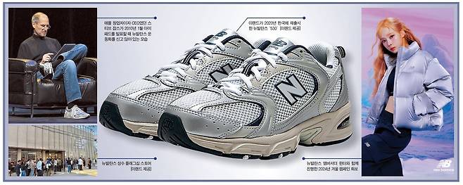 검은색 터틀넥 니트와 청바지, 회색 운동화. 2010년대까지만 해도 ‘뉴발란스’라고 하면 자연스럽게 떠오르던 이미지였습니다. 애플의 창업자 스티브 잡스가 새 아이폰과 아이패드를 소개할 때마다 입었던, 이른바 ‘잡스 룩’이죠. IT 혁신을 이끄는 그가 선택했기 때문일까요. 국내 소비자에게 뉴발란스는 디자인이 투박하지만, 기능은 좋아 보이는 브랜드에 지나지 않았습니다.