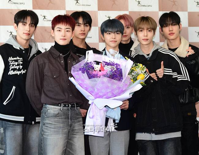 올아워즈와 멤버 온이 17일 오전 서울시 송파구 한림연예예술고등학교에서 열린 제14회 졸업식에 참석하고 있다. 2025.2.17