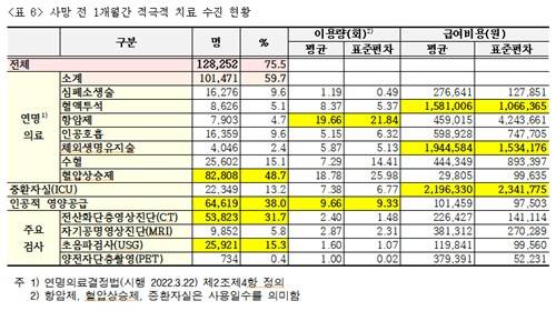 전체의 59.7%인 10만1천471명은 사망 전 한 달간 연명 의료를 받았다.