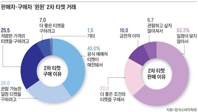 물론 이번 조사에서 소비자는 2차 티켓 거래 과정에서 사기·가짜 티켓 등의 위험 요소가 상존한다는 점도 인식하는 것으로 나타났다. 이를 방지하기 위해 판매자 본인 인증, 불법 거래자 처벌 등 제도적 장치 마련이 필요하다고 봤다. 박정인 단국대 과학기술정책융합학과 교수는 “정부가 개인 티켓 거래에 지나치게 간섭하면 사적 자치가 침해될 우려가 있다”며 “소비자가 원하는 것은 불법 매크로 등 스켈핑(영리적 대량 구매) 행위만을 엄격히 단속해, 누구나 공정하게 티켓에 접근할 수 있도록 하는 것”이라고 말했다. 이어 “건전한 시장 생태계를 조성할 수 있는 법적 근거를 마련해 소비자를 위한 안전한 티켓 재판매 환경을 조성해야 할 것”이라고 했다.