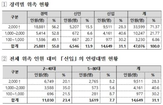 GA협회가 공개한 자료에 따르면, 지난해 전체 신규설계사 4만7,076명 중 신인과 신입은 각각 6,546명(13.9%), 1만4,649명(31.1%)으로 총 45%를 차지했다.