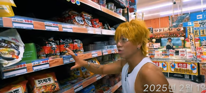 첫 장면에서 일본의 한 대형마트에서 라면을 고르던 그는 한국 라면들을 소개했다.
