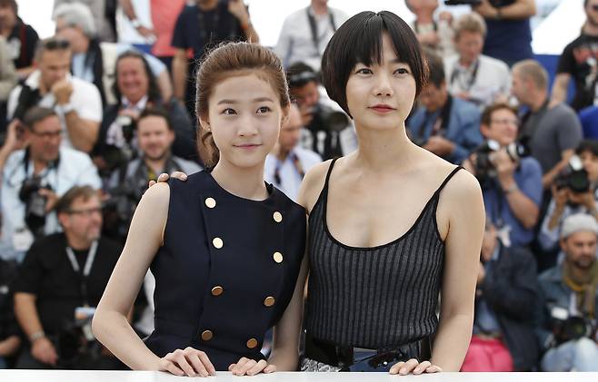 ▲ 배우 김새론(왼쪽)과 배두나가 2014년 3월 20일(현지시간) 프랑스 칸에서 열린 제67회 칸국제영화제의 영화 <도희야> 포토콜 행사에서 함께 포즈를 취하고 있다.