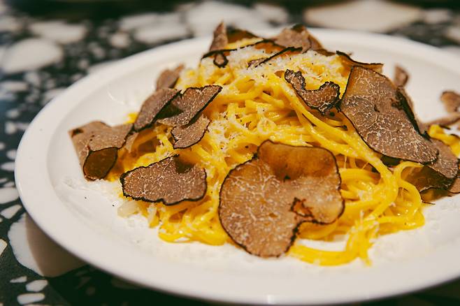 평일 점심은 스타터, 파스타, 디저트 3코스로 준비되며, 가격은 155HKD(약 2만9,000원). 가장 많은 추가금이 붙는 딸리올리니 트러플(+42HKD)를 시켜도 4만원 이내로 식사할 수 있다. 스타터로는 부라타 치즈 샐러드, 문어샐러드, 비텔로 토나토 중 하나, 파스타는 딸리올리니 트러플, 파파르델레 아마트리치아나, 라자냐 중 하나, 디저트는 티라미수 또는 에스프레소를 선택하는 게 좋겠다. 특히, 트러플 파스타는 계란 풍미가 진한 얇은 면의 딸리올리니(따야린), 블랙 트러플, 화이트 트러플 페이스트로 진항 풍미를 선물한다. 곱빼기가 있다면 시키고 싶을 정도로 흡입력이 있다.