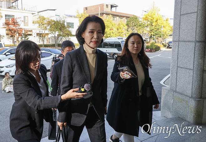 | ▲ 이진숙 방송통신위원장이 2024년 11월 12일 오후 서울 종로구 헌법재판소에서 열린 탄핵 심판 1차 공개 변론에 출석하고 있다. |