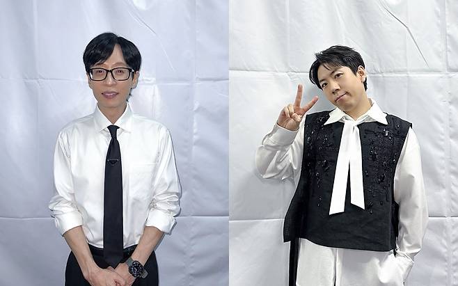 양세찬은 아이돌 못지 않은 비주얼을 뽐낸 가운데, 유재석은 다소곳한 포즈로 인자한 미소를 지으며 소속사 대표같은 포스를 보여줬다.