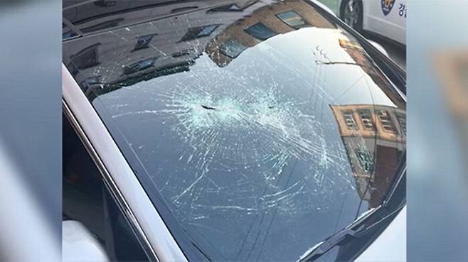 강한 충격에 앞유리창이 거미줄처럼 박살 나는 등 큰 피해가 났는데요.