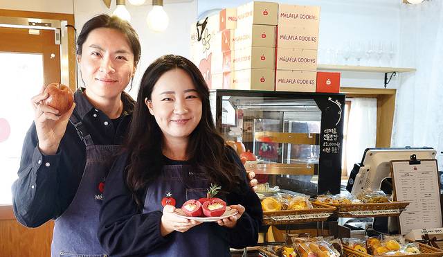처음엔 적자를 무릅쓰고 영주 사과 알리기에 힘썼다. 경북문화관광공사의 프로그램 ‘경북 여행 찬스’ 참가자에게는 디저트값을 1000∼5000원 깎아줬다. 소백산국립공원의 ‘한달 살기’ 체험객을 위한 반값 할인도 진행했다. 덕분에 방문객들이 밀라플라가 있는 구도심 곳곳을 둘러보기 시작했다. 영주 사과의 매력에 빠져 쿠키와 굿즈를 사 가는 이들도 늘었다.