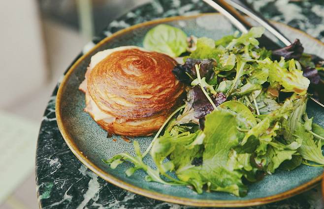 특별한 공간은 또 있다. 미술관 내에 있는 카페 1902다. 가벼운 점심과 샌드위치, 샐러드, 디저트 등이 준비돼 있다. 메뉴가 많지 않은데, 그중에서도 크로크 푀유테(Croque Feuillete)는 빠트릴 수 없다. 햄과 치즈를 곁들인 동그란 크루아상으로 이해하면 된다. 버터와 치즈의 깊은 풍미와 짭짤한 햄의 조화가 만족스럽다. 빵의 바삭하면서 가벼운 식감은 덤이다. 따뜻한 커피와 산뜻한 샐러드를 더하면 한 끼 식사로도 부족함이 없다. 또 매일 다른 맛을 선사하는 오늘의 파스타, 오늘의 메뉴 등을 활용한 25유로짜리 세트 메뉴도 있다.