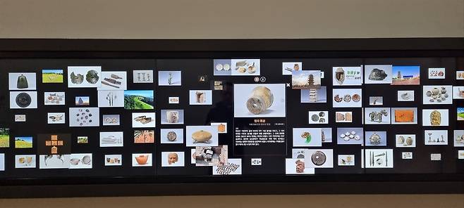 | ▲ 디지털 전시화면 관심있는 유물을 터치하면 사진과 설명이 나온다 |
