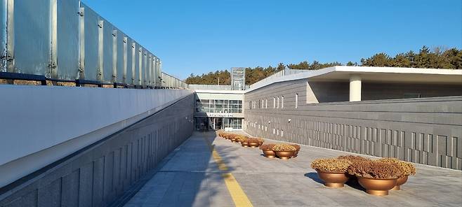 | ▲ 박물관입구 지상의 미륵사지와 조화를 이루는 지하 전시실 |