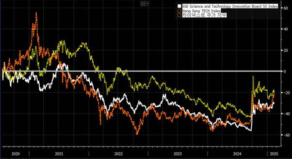 [항셍테크와 과창판 STAR50지수의 수익률 비교]