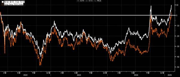 [항셍테크와 H지수의 수익률 비교]