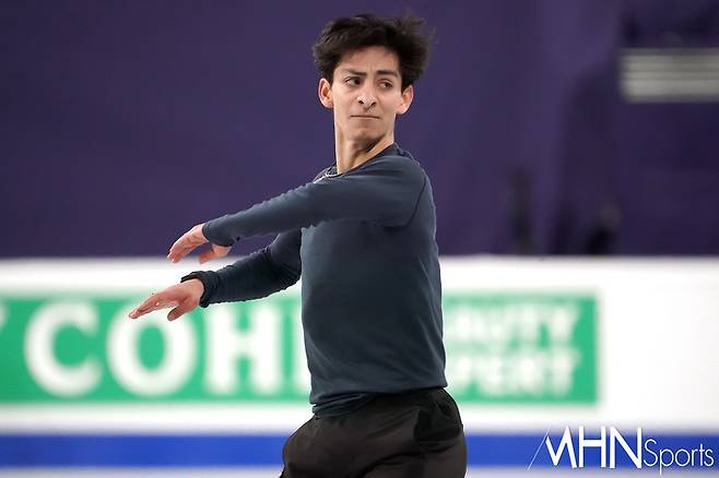남자 싱글 카자흐스탄 미하일 샤이도로프(Mikhail Shaidorov)가 음악에 맞춰 연습을 하고 있다.