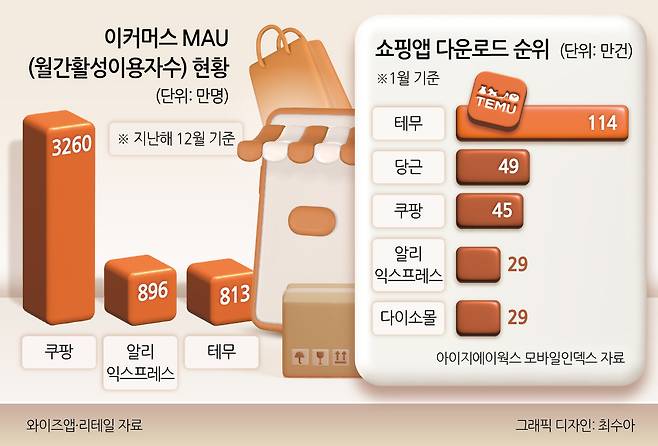 한편 테무는 초저가 공세와 바이럴 마케팅을 통해 가입자를 끌어모으는데 성과를 거뒀다는 평가를 받는다. 앱 분석 서비스 와이즈앱·리테일에 따르면 테무의 MAU(월간활성이용자수)는 지난해 12월 813만명으로 쿠팡, 알리익스프레스에 이어 3위를 차지했다. 지난달에는 822만명으로 더 늘었다.