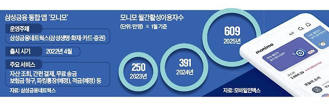 삼성금융은 지난해 6월 삼성금융 계열사 통합 앱인 모니모의 경쟁력을 강화하기 위해 국민은행과 손을 맞잡았다. 모니모는 삼성생명·화재·카드·증권 등 각 업계 1위인 비은행 계열사의 기능을 통합한 슈퍼 앱이지만, 은행이 없어 확장성이 떨어지는 한계가 있었다. 입출금과 계좌이체 등 금융 거래의 기본인 통장 서비스를 제공할 수 없었기 때문이다.