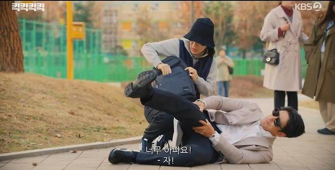 19일 방송된 KBS 2TV 수목드라마 '킥킥킥킥'에서는 지진희(지진희 분)가 킥보드를 피하다 넘어져 부상을 당했다.