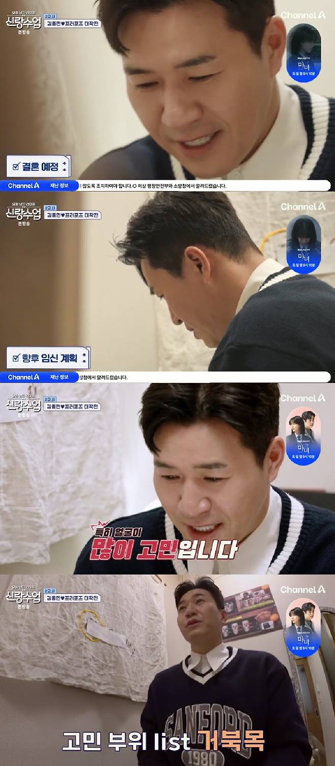 이날 관리샵을 찾은 김종민은 체크리스트를 작성하며 결혼 준비를 본격적으로 시작했다. 그는 결혼 예정과 향후 임신 계획에 모두 'YES'를 체크하고, "결혼식이 얼마 안 남았으니까 신부뿐만 아니라 신랑도 관리하러 왔다"며 관리 이유를 밝혔다.