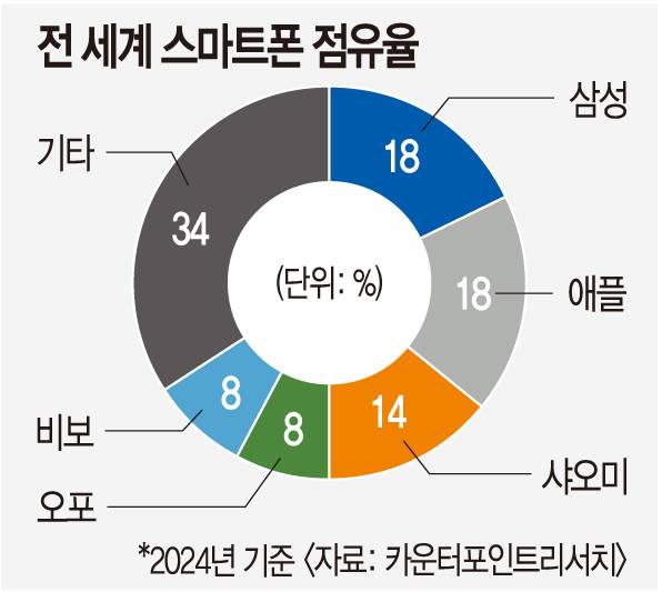 인공지능(AI) 스마트폰의 등장이 애플과 삼성 중심의 스마트폰 양강 구도를 바꿀 수 있을까. 당장 한국 소비자에게는 삼성전자의 갤럭시 S 시리즈가 AI 스마트폰의 상징으로 받아들여지고 있지만, 애플 인텔리전스 업데이트와 샤오미의 저가 공세가 시장을 뒤흔들 수 있다는 전망이 조심스럽게 나오고 있다. 삼성, 애플에 이어 전 세계 스마트폰 판매량 3위를 유지 중인 샤오미는 점유율을 조금씩 늘려가고 있다.