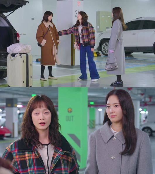 공개된 사진 속 아파트 주차장에서 어딘가로 떠나는 최하나와 그런 그녀를 보내기 아쉬워하는 지송이와 안찬양의 애틋한 현장이 담겼다.