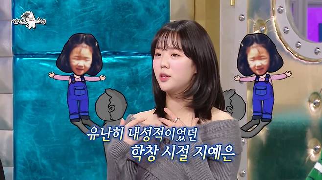 김구라는 "학창 시절에는 좀 모지리 캐릭터였냐"고 물었고, 지예은은 "제가 할 말이 있어도 너무 내성적이어서 할 말을 못 했다"고 운을 뗐다.