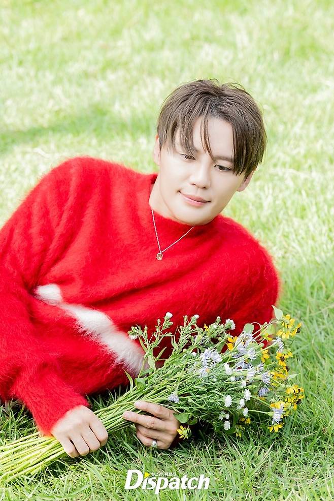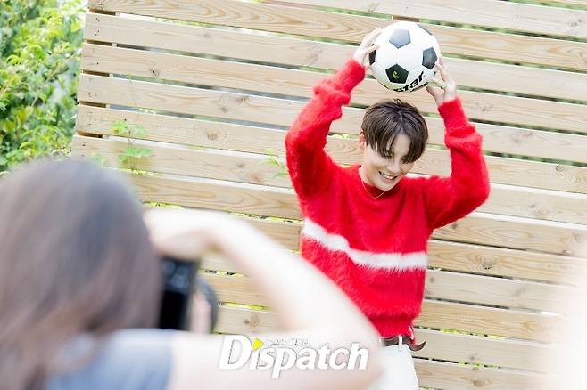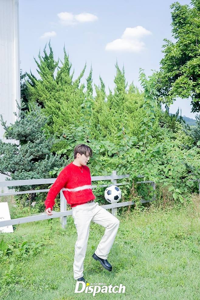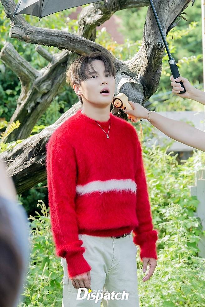 촬영날은 하필이면 늦더위가 기승을 부렸는데요. 하필 그의 의상은 두꺼운 니트. 손풍기로 땀을 말리며 열심히 촬영에 임했습니다.