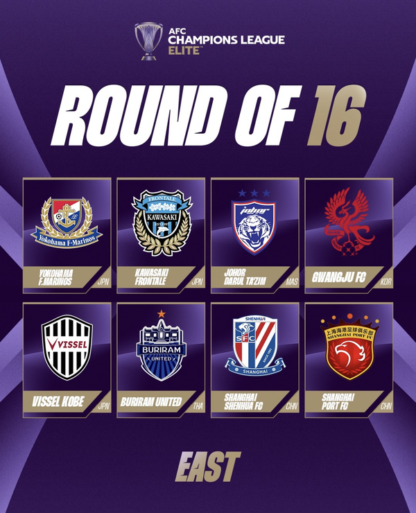 아시아축구연맹(AFC)는 20일 공식 채널을 통해 2024-25시즌 AFC 챔피언스리그 엘리트(ACLE) 동아시아 지역 16강 진출팀을 발표했다.