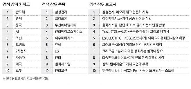 강세장 이끄는 '한화 테마주'… 美 관세폭탄에 반도체는 긴장 [빅데이터로 본 재테크]